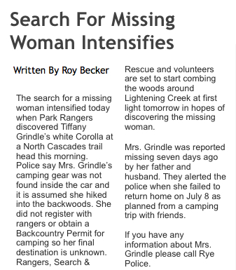 Serch intensifies copy Posted on June 12, 2018 by Finder of Lost Things Leave a comment Previous Next Return to 1.29 Extra! Extra!